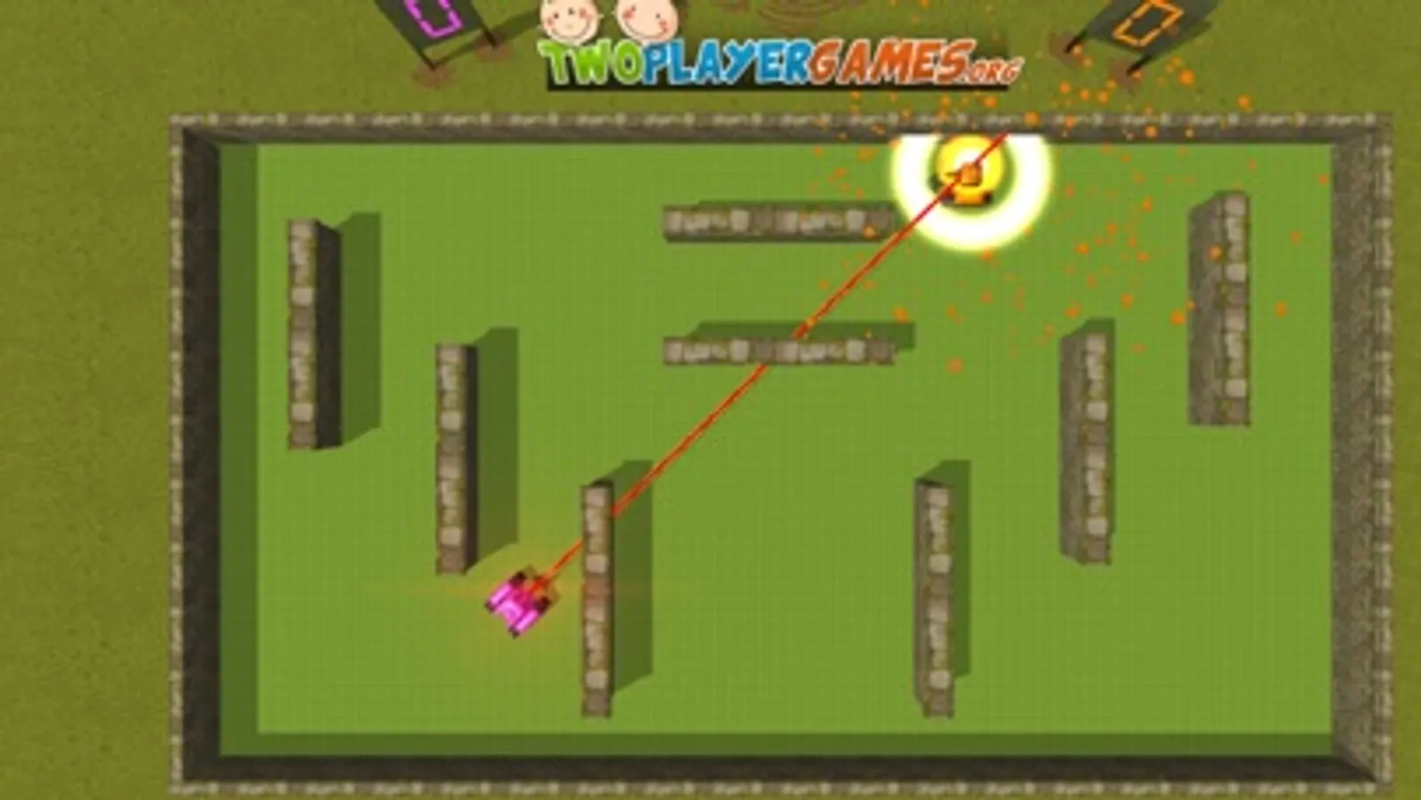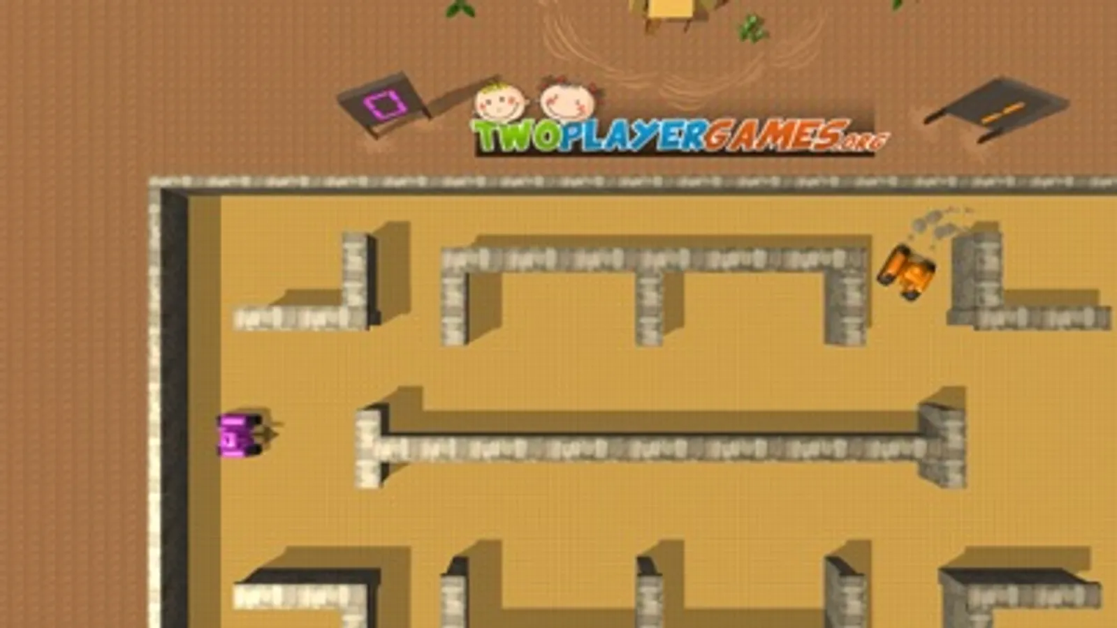Play against a CPU or against a friend! A great tank game for 2 player. In this struggle which happens in 3D labyrinths and arenas, your tanks magazine takes 5 ammos. You can take the advantage by picking up power-ups inside of the game. The one who makes 5 hitting wins the game!