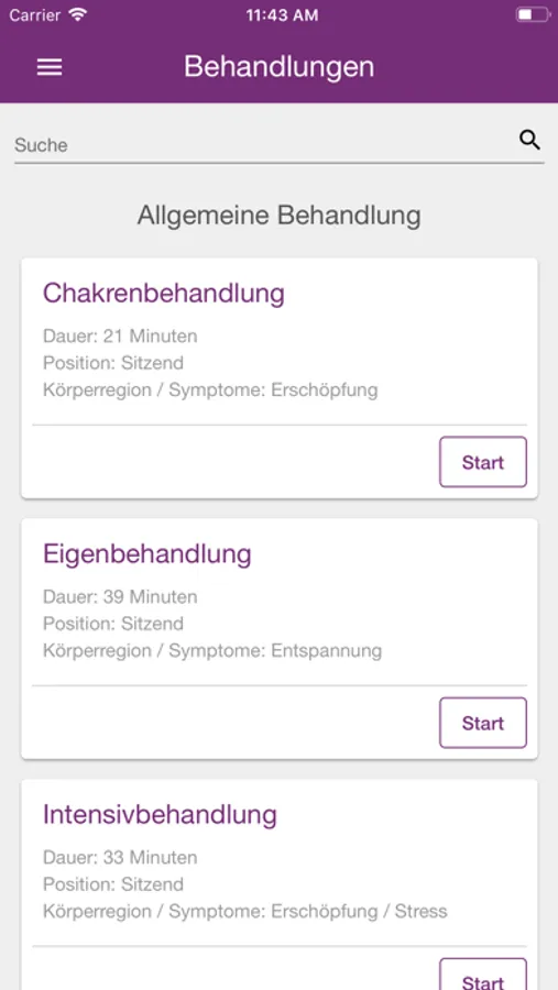 Die App bietet Dir eine geführte Behandlung mit Sprachanleitung, Positionsanzeige, Hintergrundmusik und Zeitintervall zu folgenden Anwendungen:
