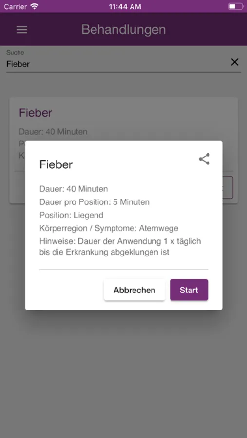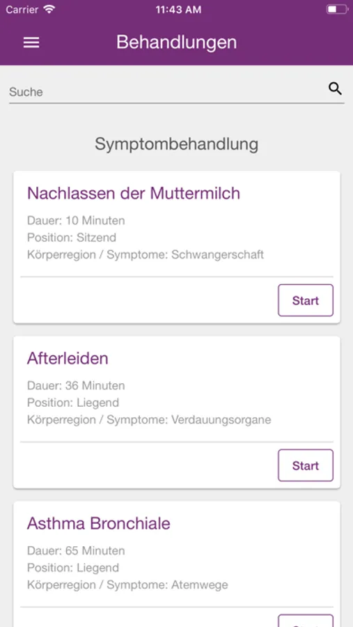 - Außer bei den Symptombehandlungen bestimmst Du die Dauer selbst (3, 4, 5 Minuten)