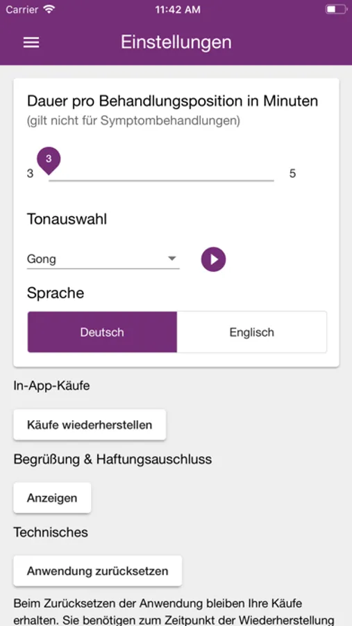 - Derzeit gibt es die App in Deutsch und Englisch. Die Sprachanleitung der Behandlungsposition ist ebenfalls in beiden Sprachen verfügbar..