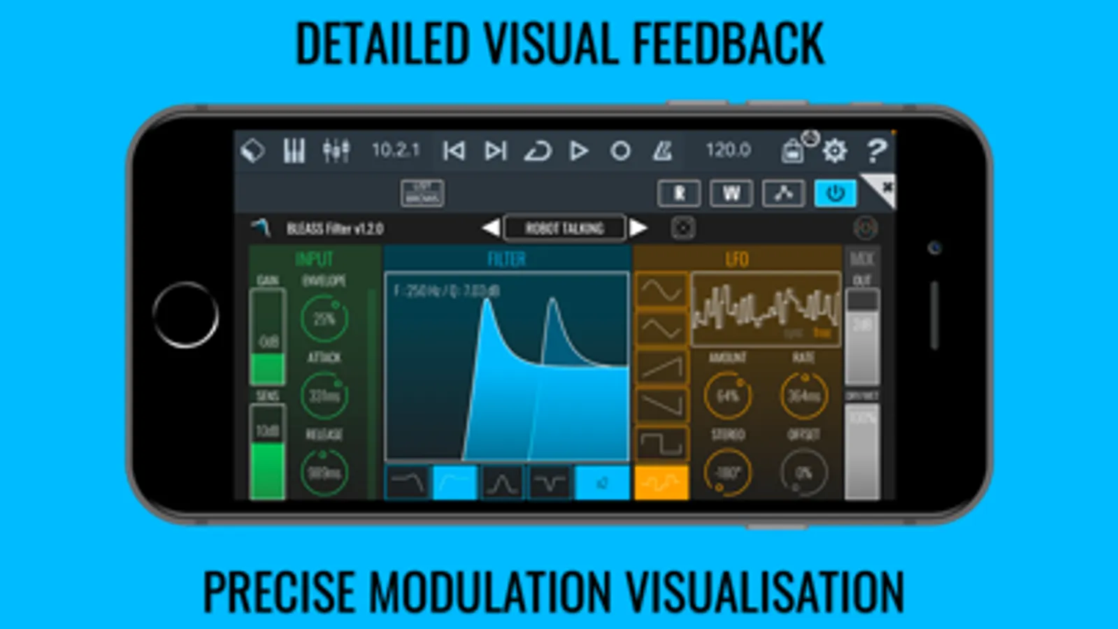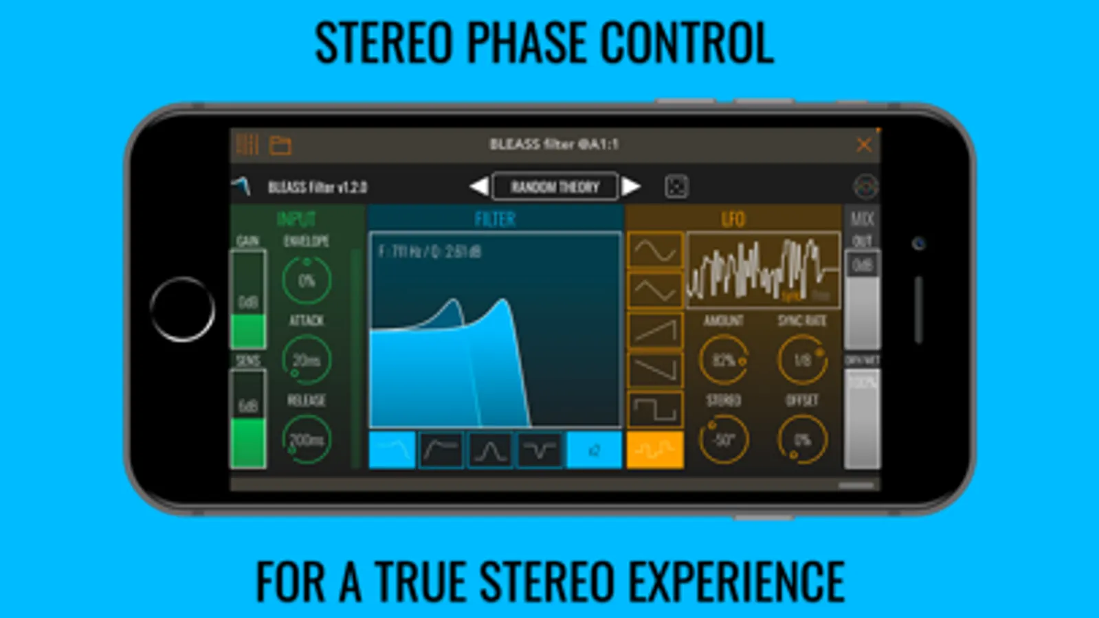 A static filter can be as dull as no filter at all, which is why we have included both an envelope follower and an LFO (Low Frequency Oscillator) in BLEASS Filter. The envelope follower can be tuned to perfectly match your audio, adding dynamic interest to your music, whilst the LFO creates repeating sweeps and movement that can run freely or sync to the beat.