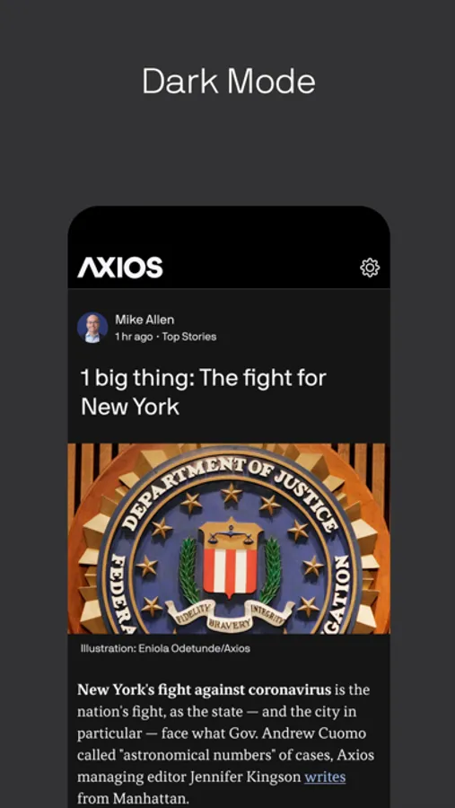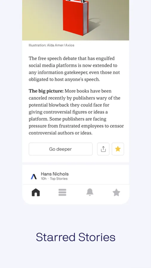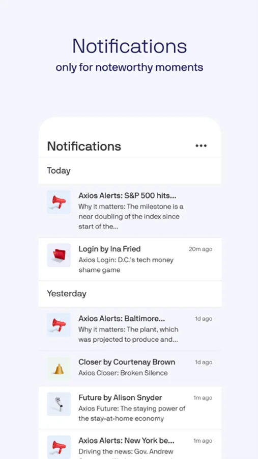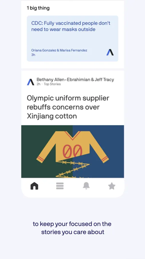 Our app provides a clean reading experience that puts the news you care about front and center. You start by following specific channels that correspond to topics that interest you. You can then access relevant content either in a single integrated feed or by hopping from channel to channel. And to make sure you stay on top of the news, Axios journalists will send you helpful notifications only for noteworthy moments.