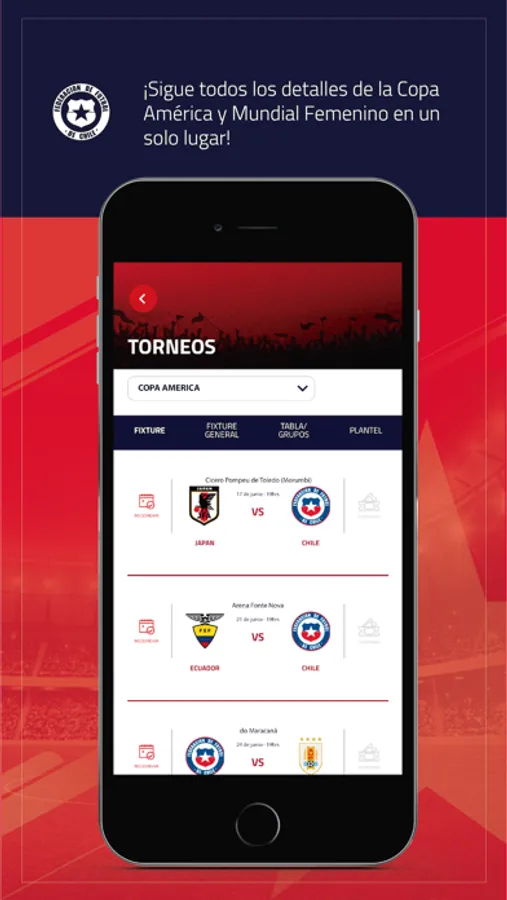 Sigue todo lo que pase con la Selección Masculina, Femenina y Juvenil. Acá podrás encontrar noticias, videos, información de los partidos al minuto, jugadores y mucho más. Todo lo que quieres saber de nuestra Selección lo podrás ver en la App Oficial.