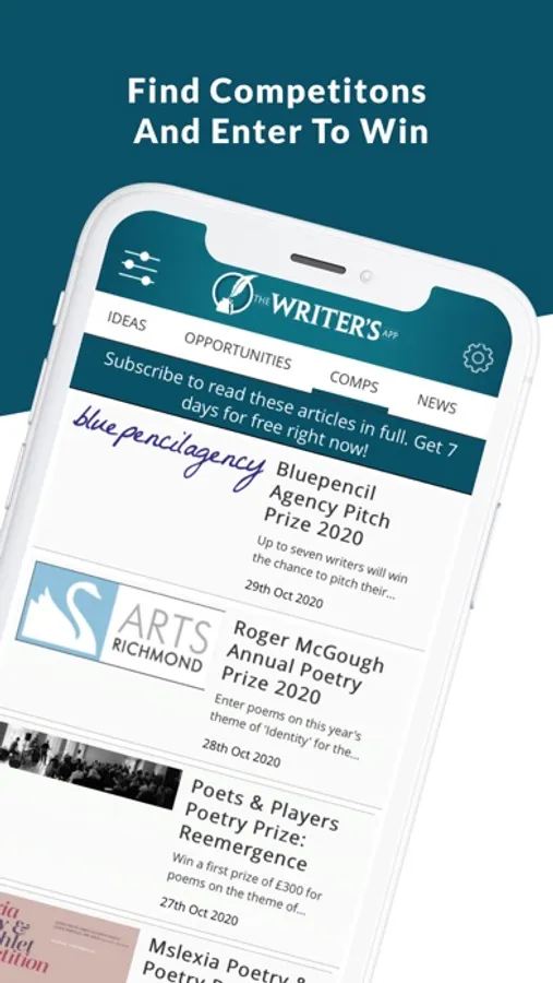 When you download The Writer’s App, we know you’ll be as excited as we are for the opportunities that await you. If you sign up now for your free 7-day day trial, you can get unlimited access starting from just £3.99 a month, conveniently paid through your existing account.