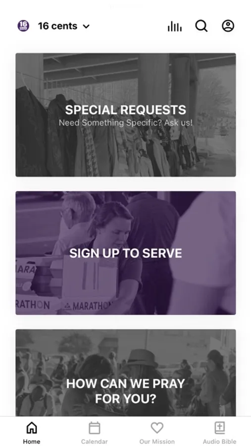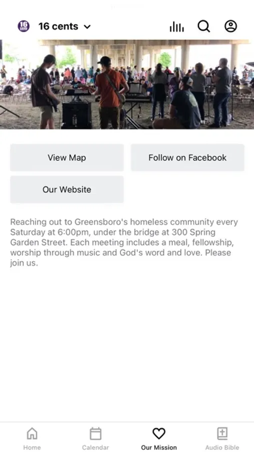 The 16 Cents Ministry is a compassion ministry based in Greensboro, NC led by God and a great team of people. Use this app to stay up to date with ministry updates and sign up to serve.