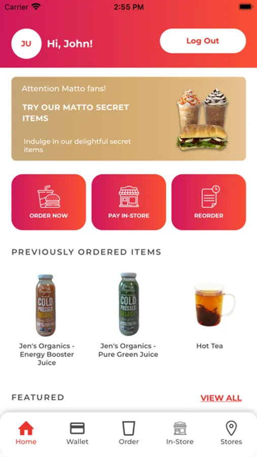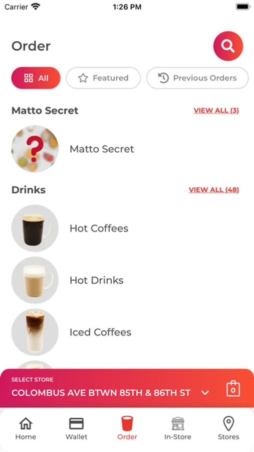 Matto's app is designed to provide users with a fast and convenient way of ordering their favorite items. Orders are received by the store and prepared so that they're ready for pickup when the customer arrives. There are monetary rewards for users who purchase a certain amount of items.