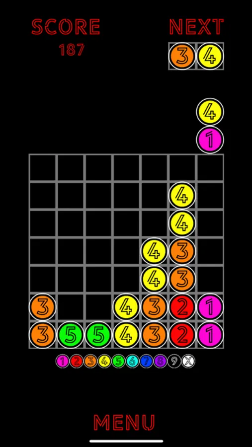 An empty board and the ultimate challenge to continuously plan and organize colors from the start. How long can you survive? How can you organize so that all colors will be useful?