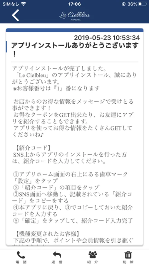Le CielbleuのアプリをSNSを通じてお友達に紹介する事ができます。