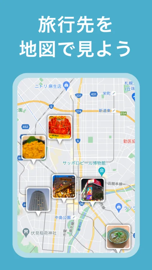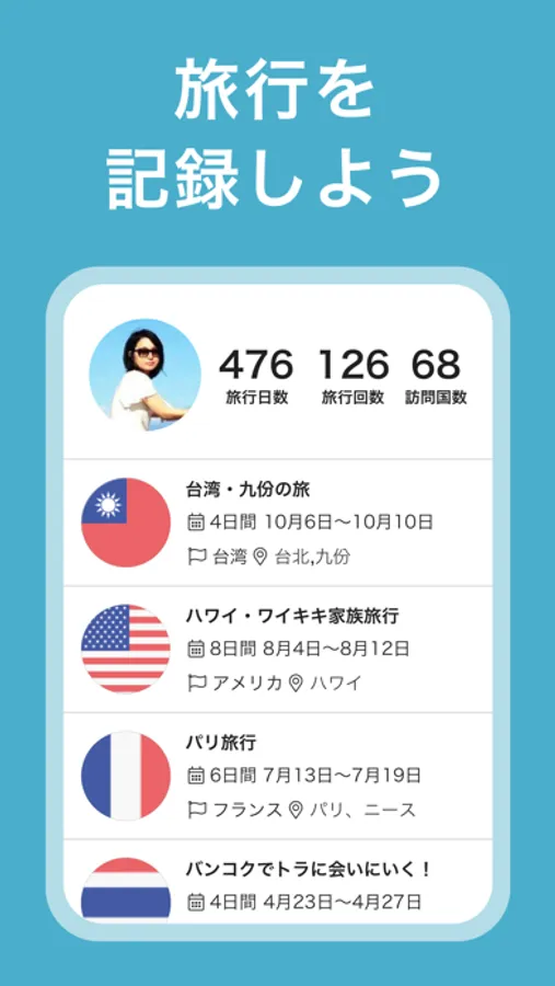 今まで行った旅行を記録したり、たくさんの旅好きと繋がって気軽に情報交換ができます。