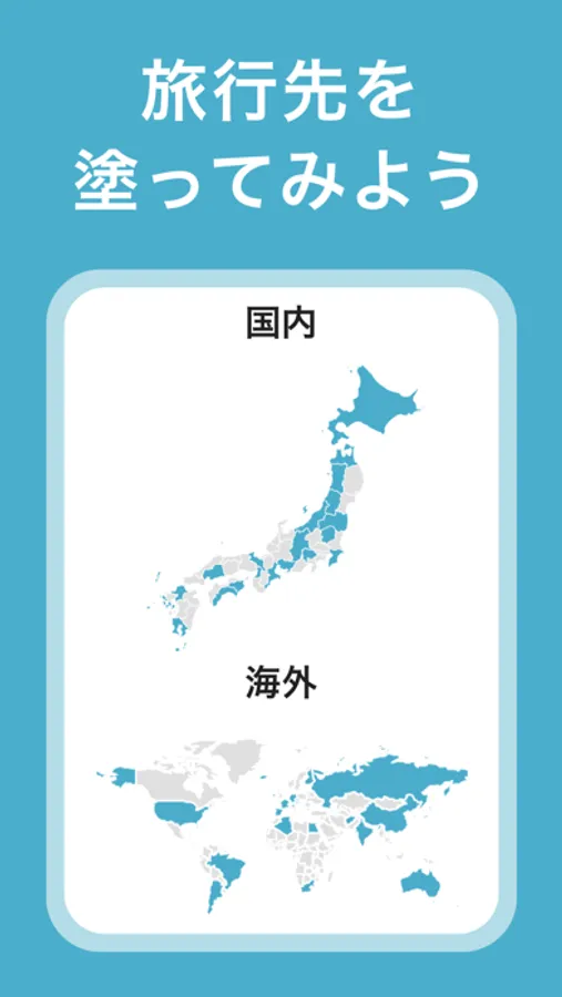 行った旅行先は地図に自動的に色塗りされます。自分の行った場所を地図で簡単に知ることができます。