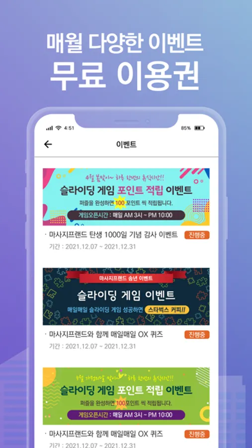 - 각종이벤트 및 이벤트 상품(무료이용권)