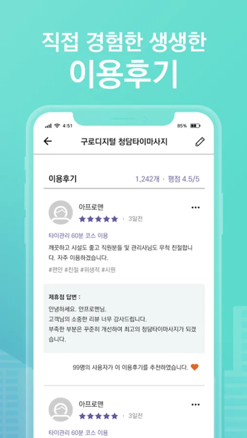 또한 특별한 할인 "슈퍼특가"로 보다 저렴한 가격으로 이용할 수 있으며 다른이용자들의 방문 후기를 통해 방문전 사용자들의 경험을 공유 할 수 있습니다.