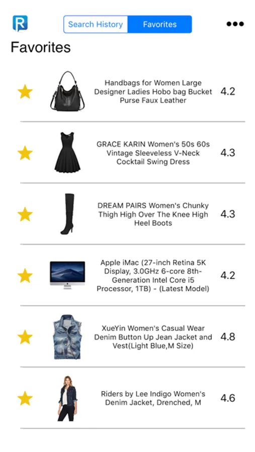 The ReviewMeta app keeps a history of all of the Amazon products you've checked (for easy access later on), and it also allows you to tag your favorite products to create a personalized Amazon wish list.