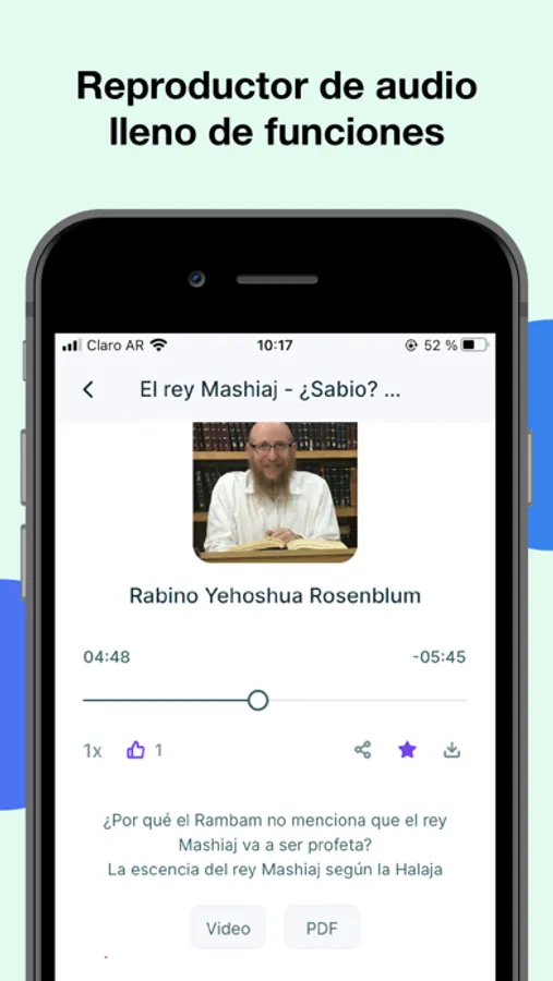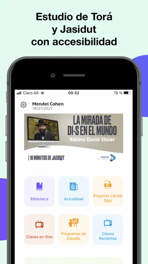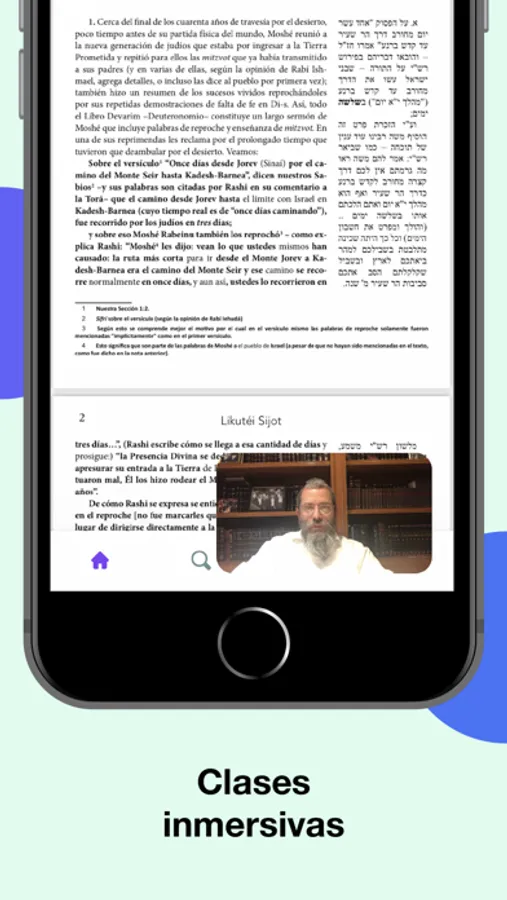 El usuario puede tomar Clases en vivo de sus Rabinos de preferencia. También, luego se puede ver las clases en caso de no haber podido participar.