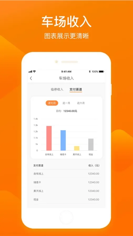 本APP用于美天停车车场管理者管理和监控其所管辖车场的整体营收情况,实时查看包括每日收入情况、车辆进出情况、车场负载情况在内的关键运营数据,采用直观的图形报表和精确的明细数据相结合的方式,使管理者能够随时掌握车场运营情况,为其高效管理和科学决策提供有效支撑。