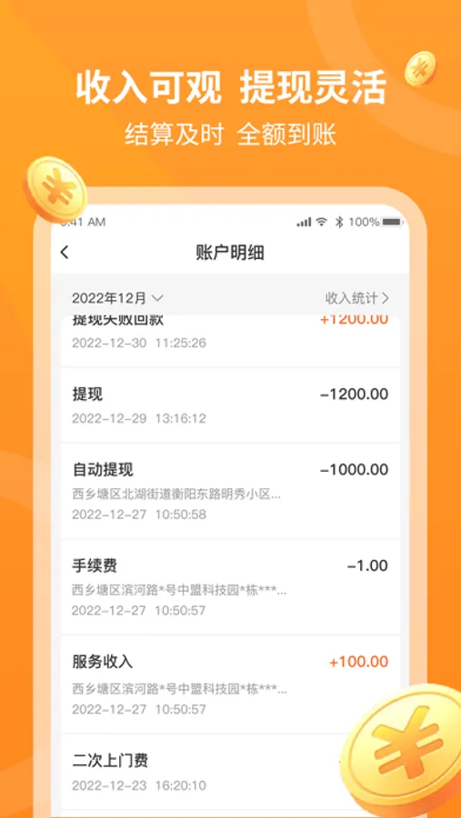 【提高收入】:订单收入,一目了然,提现既方便又快捷;