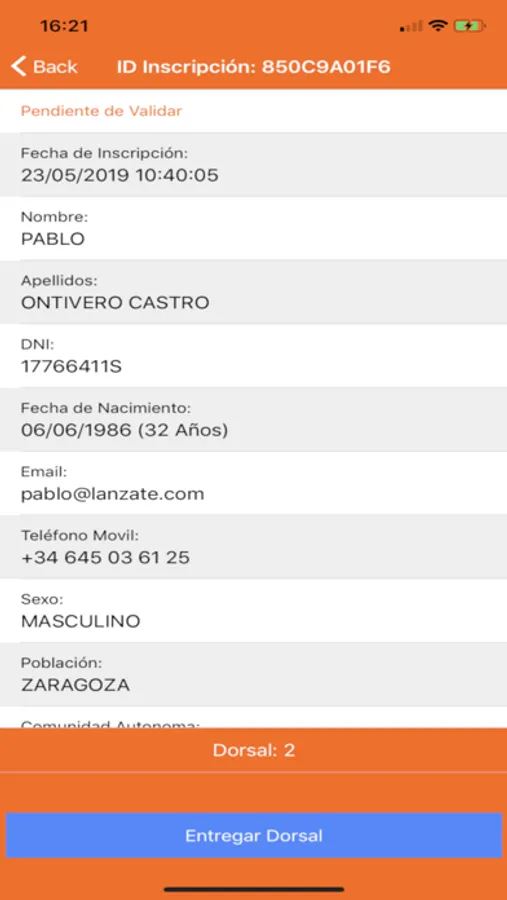 No need to prepare lists of starting numbers or to place them anywhere, nor to organize rows for each range of starting numbers, it is not even necessary for the participant to know his starting number... From our APP you can search for each participant very easily and deliver his starting number. You will be aware in real time of how many starting numbers have been delivered and by whom, who has delivered more starting numbers, and statistics of deliveries per hour.