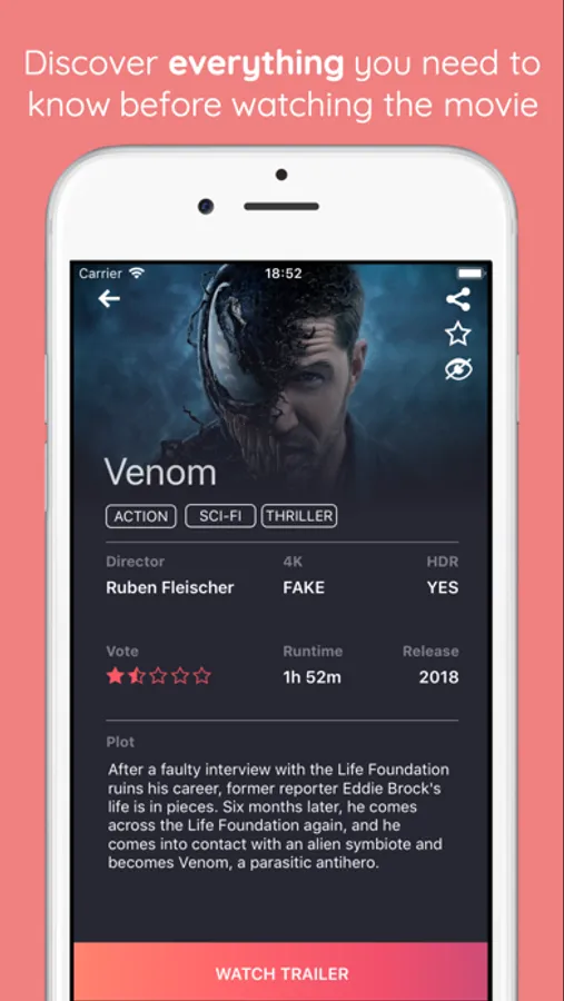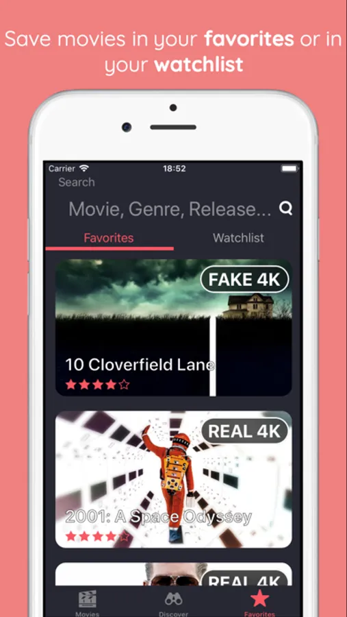 There is a simple explanation for this. Not all the movies are recorded in native 4K, many of them are in fact simply reworked in post production from a Full HD resolution to a UHD (4K) resolution, which therefore cannot guarantee maximum quality. With Real or Fake 4K you can immediately search for your favorite movies and see in which native resolution they were produced. Moreover you can simply browse the library composed of more than 550 movies all in 4K (native and not) to choose which movie to watch in the evening. In fact, in addition to the resolution, each film has a lot of other useful information like plot, director, YouTube trailer, release date, HDR etc ...