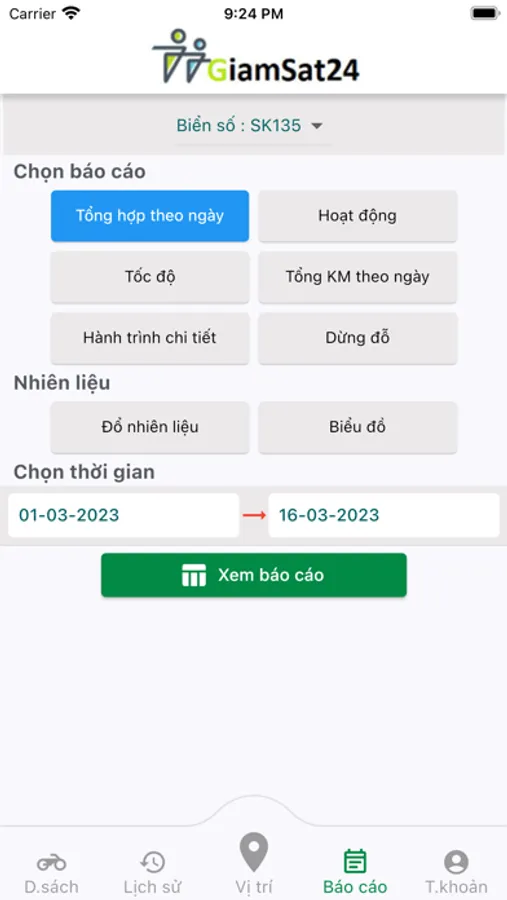 Ứng dụng theo dõi GPS của trang web giamsat24.com
