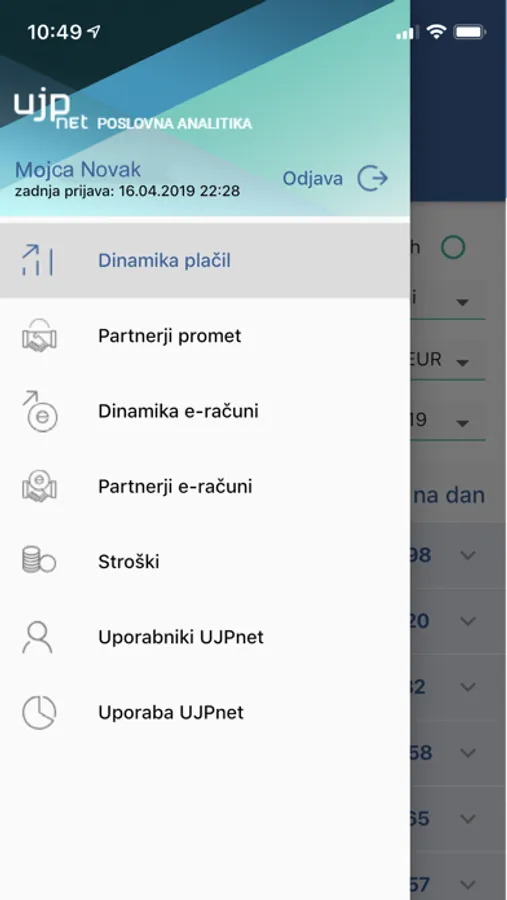 Aplikacija UJPnet Poslovna analitika omogoča zastopniku in uporabniku vpogled v: