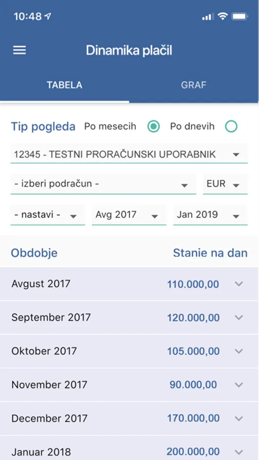 - dinamiko plačil (pregled števila plačilnih nalogov in gibanja stanja na podračunu),