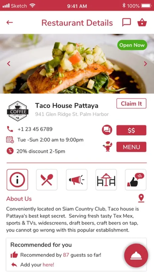 A unique mobile APP for finding daily restaurant specials, happy hours, recommendations, online food ordering, loyalty points, restaurant details and announcements, etc., keep up to date with. and support your favourite local restaurants all via a convenient mobile application. An app offers restaurants a choice of either a free restaurant listing (basic functions) or a premium profile listing that provides their customers with some advanced functions. This pop up appears when a user clicks on a function that is only included in the premium membership package. This is just a prompt to let the restaurant owner know that a user wishes to access a premium feature. Restaurant owners can upgrade from the free version of the APP to the premium version via a separate web-based CMS (content management system). We offer restaurants both the free version, and the premium features so that they can choose based on their preference. Free to all end users.