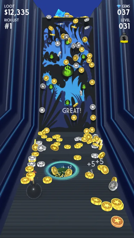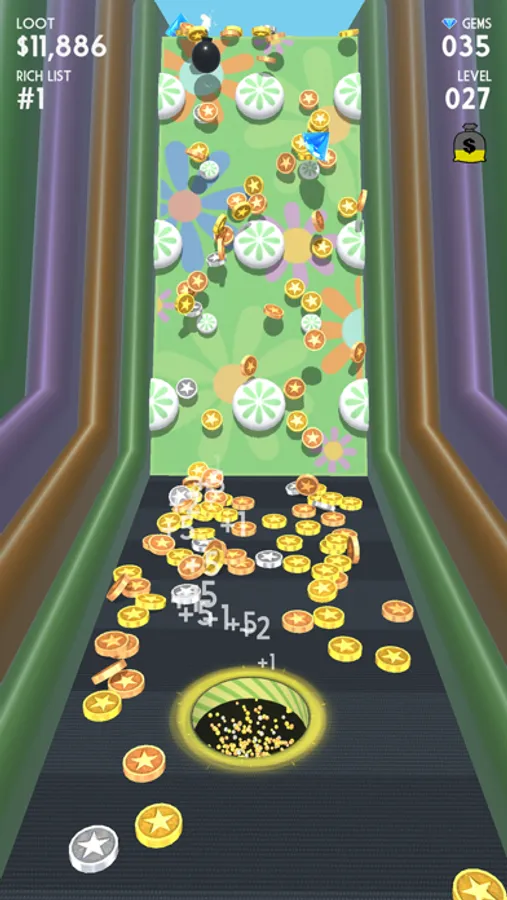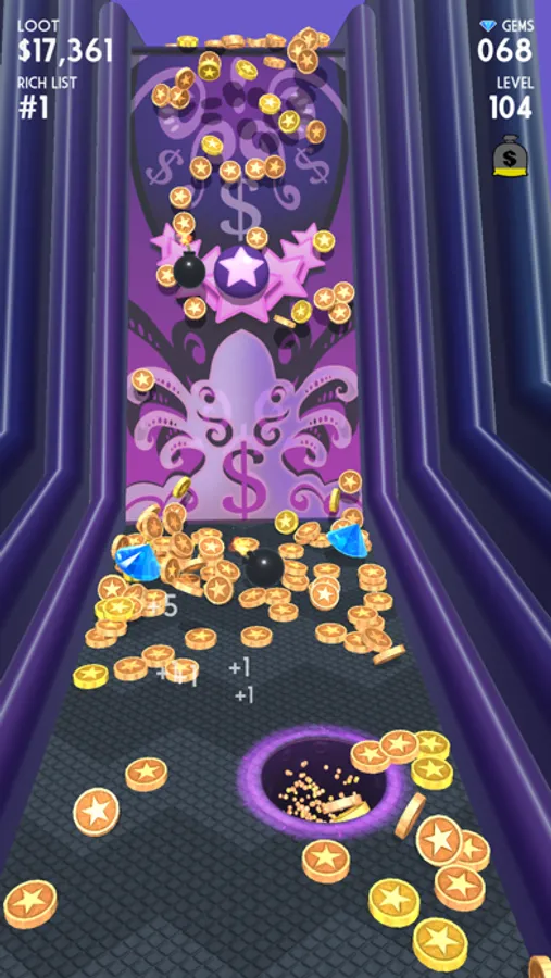 Gobble up the shiny coins and sparkling gems in this addictive and relaxing "eat-em-up".