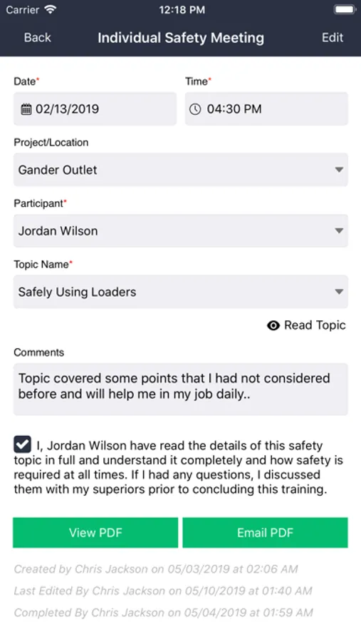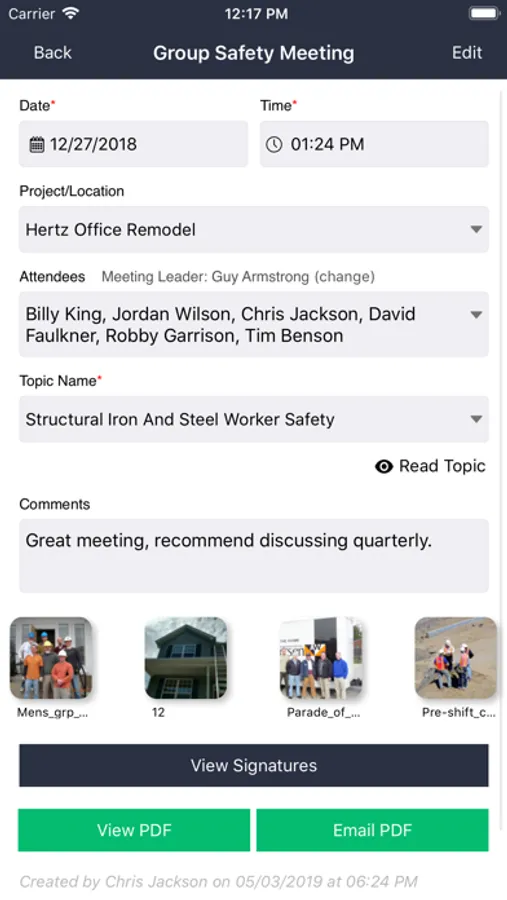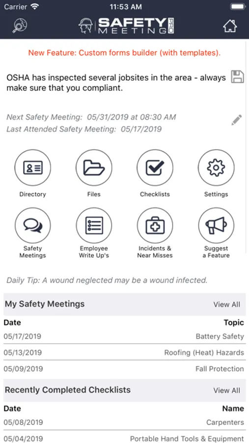 • Group Safety Meetings --- Frequent safety meetings is the OSHA law. We make it easy to meet with your crew and collect their individual signatures for easy documentation.
