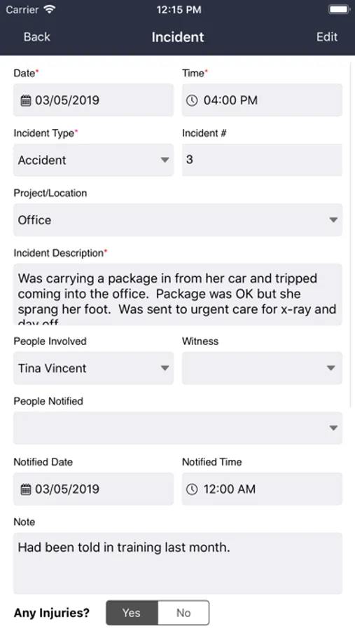 • Incident & Accident Documentation --- Tracking this information is a must.