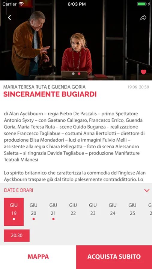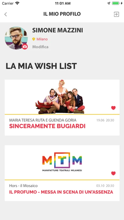 Potrai, inoltre, creare la tua WishList grazie alla quale verrai avvisato in prossimità degli eventi e degli spettacoli che ti interessano, per non perderti nulla.