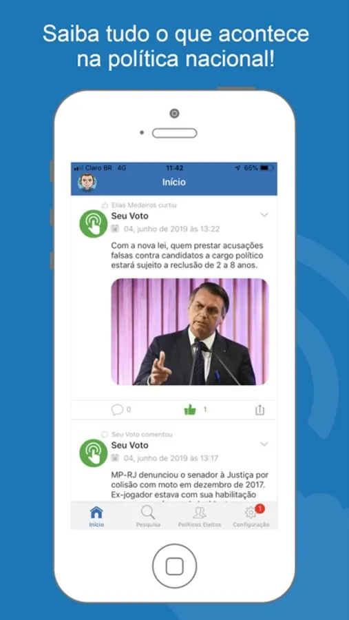 O aplicativo Seu Voto tem como objetivo levar as notícias sobre os acontecimentos políticos em geral no Brasil. Além disso, tem a função de ajudar aos usuários no acompanhamento de políticos específicos adicionados pelo próprio usuário na conta.