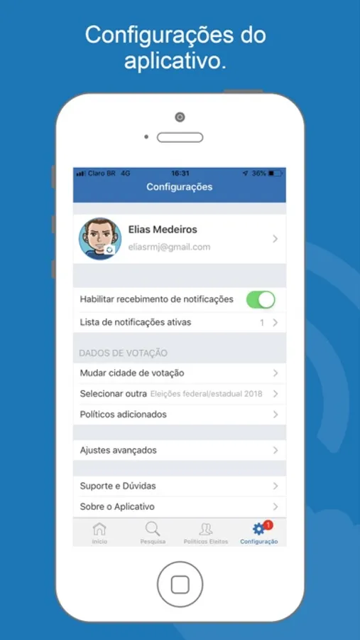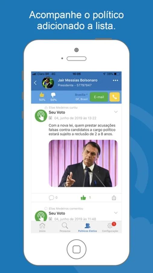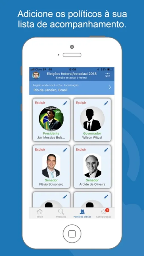 O usuário escolhe quais candidatos votou e quais outros mais gostaria de acompanhar diariamente de uma maneira simples, rápida e o melhor de tudo, em um único lugar. Pode cobrar atitudes e promessas feitas tempos atrás quando diziam que seriam diferentes de tudo que estamos cansados de ver dia após dia.