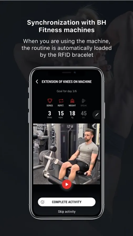 This synchronisation will occur automatically with the BH Fitness machines, simply by approaching the RFID bracelet, this gives you the capability to concentrate on your exercises and not have to waste time typing.