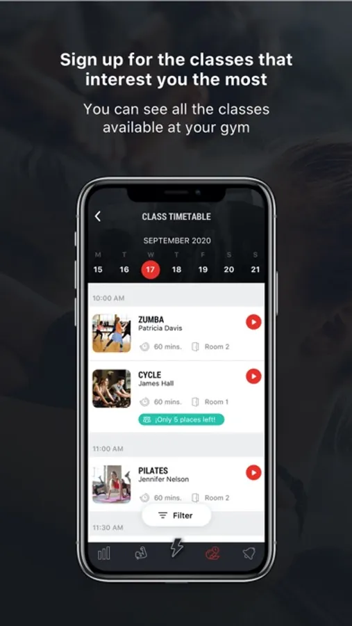 You will be able to see all the classes that are offered by your sports centre, filter them by type (cardio, bodybuilding, weight loss, aquatic), see what they consist of and which instructor will be teaching them and then sign up for those classes that interest you most.