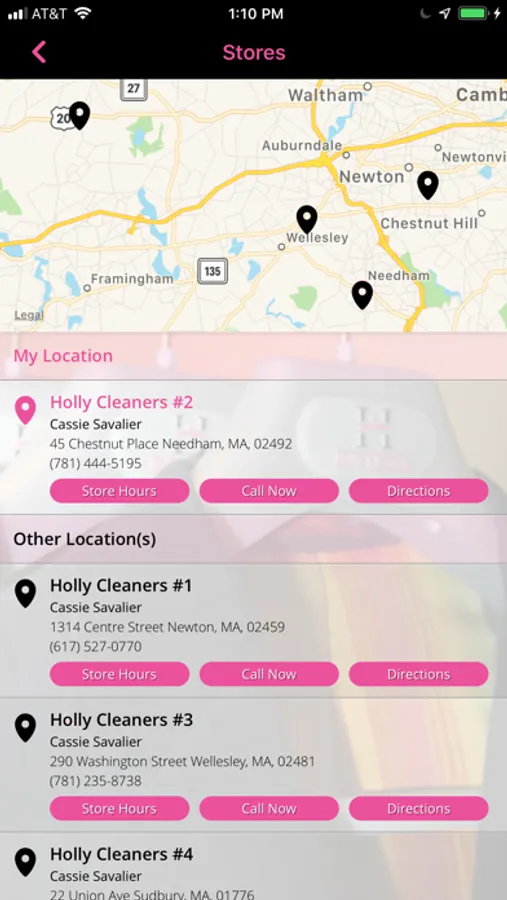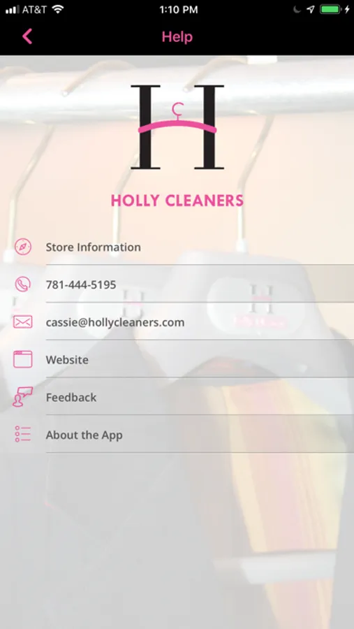 5) Quickly contact Holly Cleaners by phone or email and access their website all directly from your device.