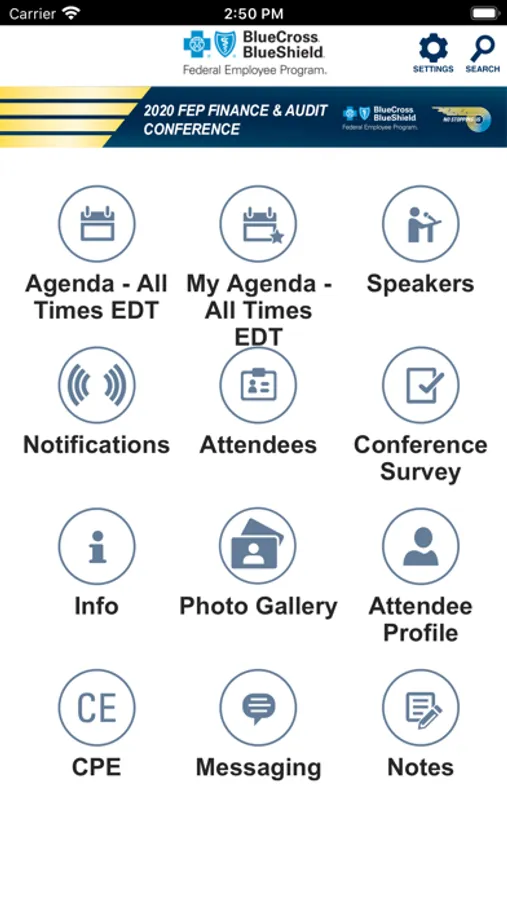 Features includes: Session schedule, Attendee list, in-app messaging, surveys, notes, and much more!