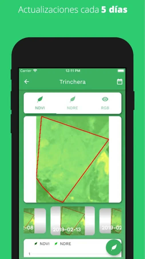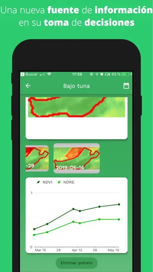 Indices NDVI y NDRE de las forma más rápida y fácil, ademas de información elaborada por la app en base a datos remotos combinados con información local.