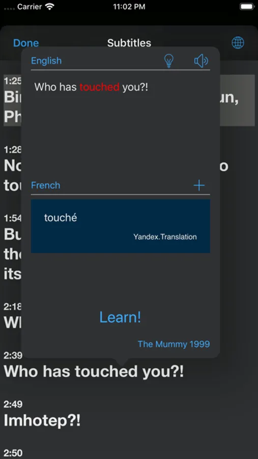 A convenient application for watching films and series in foreign languages with subtitles and learning new words and phrases. Just touch an unknown word or a phrase, get its translation and add a card to learn it later.
