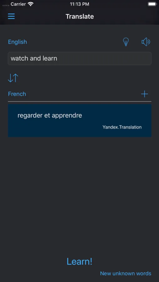 - speech to text function - just say unknown words and app will translate it