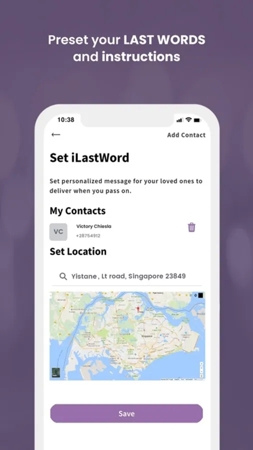 While you are living, iLastWord’s in-built GPS Tracker allows you to send real-time location and message to the people who matter at your deathbed (Critical function a.k.a Last Breath trigger) or in times of emergency (S.O.S. Help Alert function). In addition, the iJournal function allows you to chronicle the milestones during your lifetime and to bring these milestones to life through media files, which you then may opt to share with others while you are living or upon your after life.