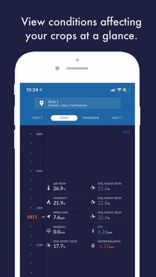 • View microclimate growing conditions for each block and planting in one place, including 7-day predictions