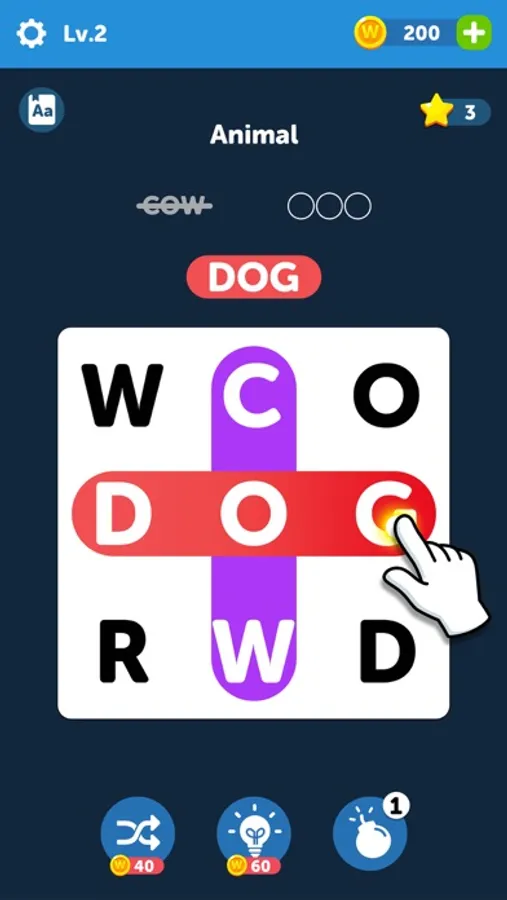 - Simple and easy! Just swipe up, down, left, right or diagonally to find words!