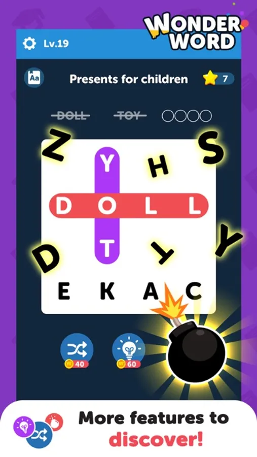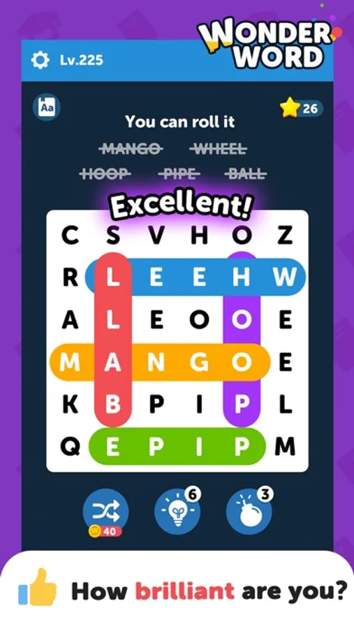 Wonder Word is a brand-new word search game. It starts out easy but gets progressively more challenging. Beat as many levels as you can to increase your intelligence score! It’s so fun you will never put it down!