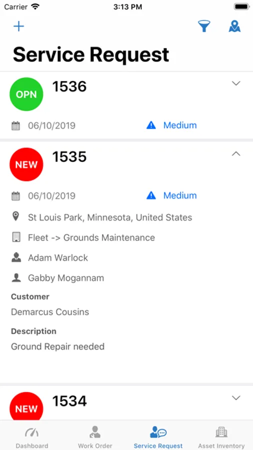 • DASHBOARD: Users can quickly view their top three work orders and service requests from the home screen with the ability to quickly view additional details on the go or get directions directly to the work site.