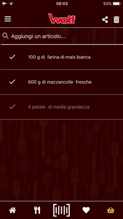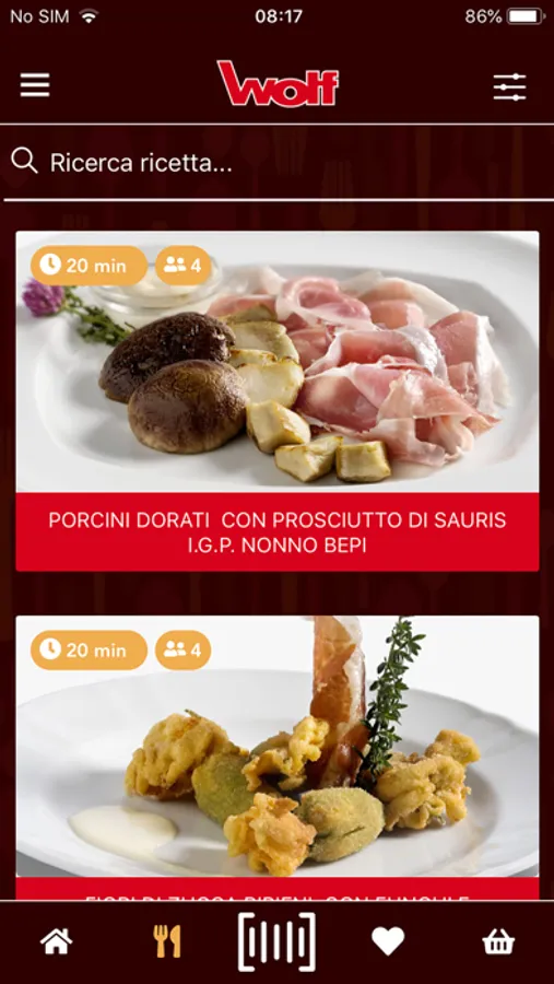 Se hai già acquistato un prodotto Wolf inquadra il codice a barre e l'applicazione mostrerà le ricette che potrai preparare con quel prodotto.