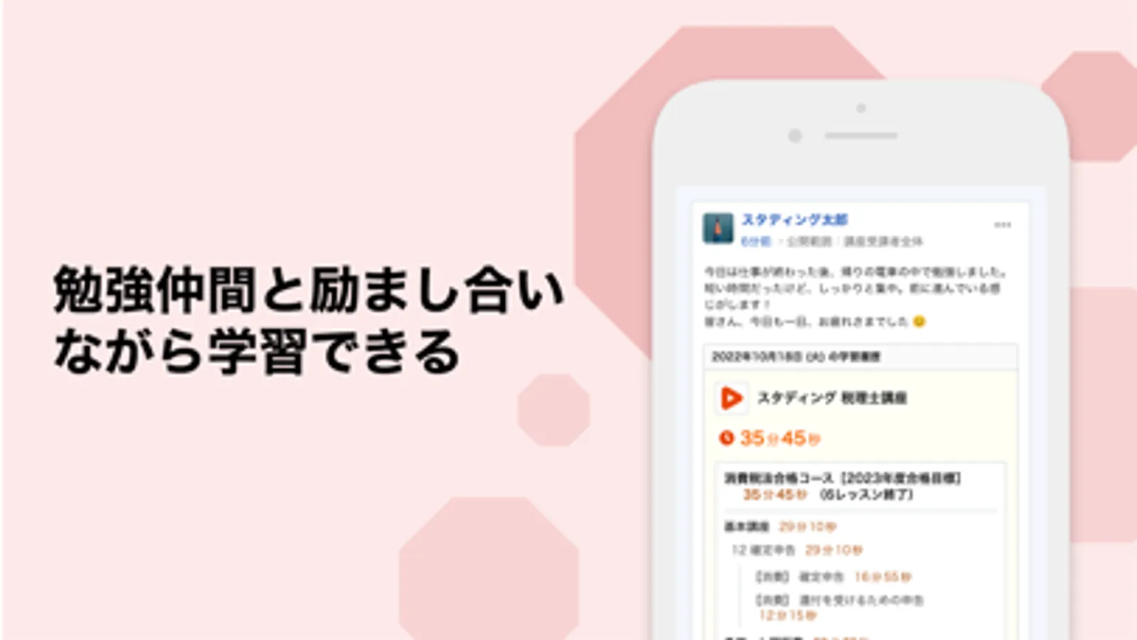 同じ資格を目指す勉強仲間をつくり、日々の勉強内容を簡単に投稿できます。投稿に対し 「いいね」 や 「コメント」 をすることで励まし合いながら学習できます。