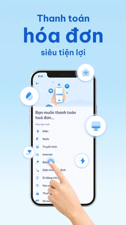 - Thanh toán dịch vụ: Thanh toán hóa đơn điện, điện thoại di động, điện thoại cố định, internet, truyền hình cáp, … chỉ bằng vài thao tác đơn giản trên ứng dụng.