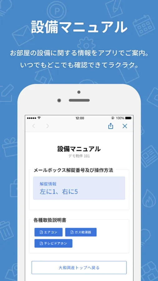 株式会社 大和興産が賃貸管理するアパートの入居者専用アプリです。