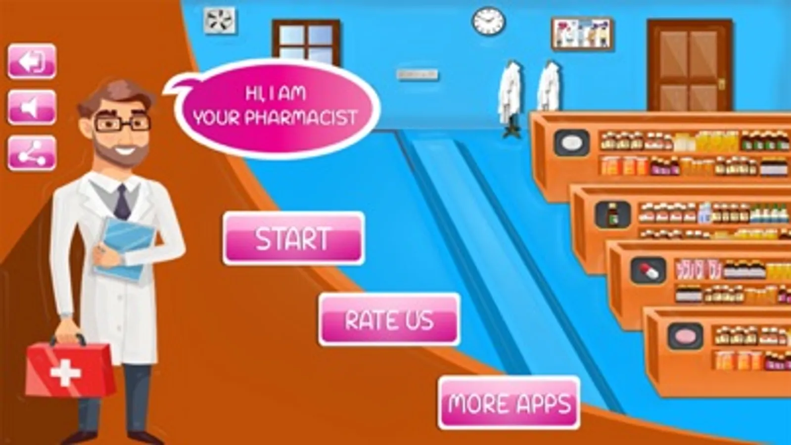Play with the major duties of cash register and pharmacist to hospital patient prescription - all in one! So as a doctor of medicine, you don’t need any bachelor degree, or a tough syllabus or you don't even need to learn pharmacy drug book, any pharma guide or pharmacology mnemonics neither you need to learn medicine formulas or any difficult drug names nor a clinical examination and skills. In this pharmacy management game for kids, play as a pharmacist or a customer & shop at several venues including the Hospital drug Shop, Cafeteria, and the Pharmacy! Pick up items, hold the prescription and then give the medicine. What are you waiting for? Download this super good pharmacy cashier register game with drugstore cashier duty and time management duty to start this game right now.