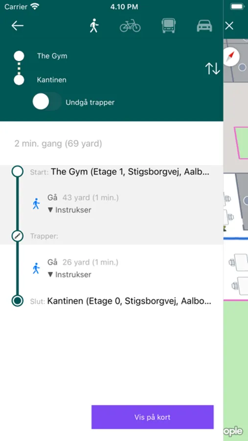 • Get a route using car or public transport to the destination venue, and continue the route on foot.